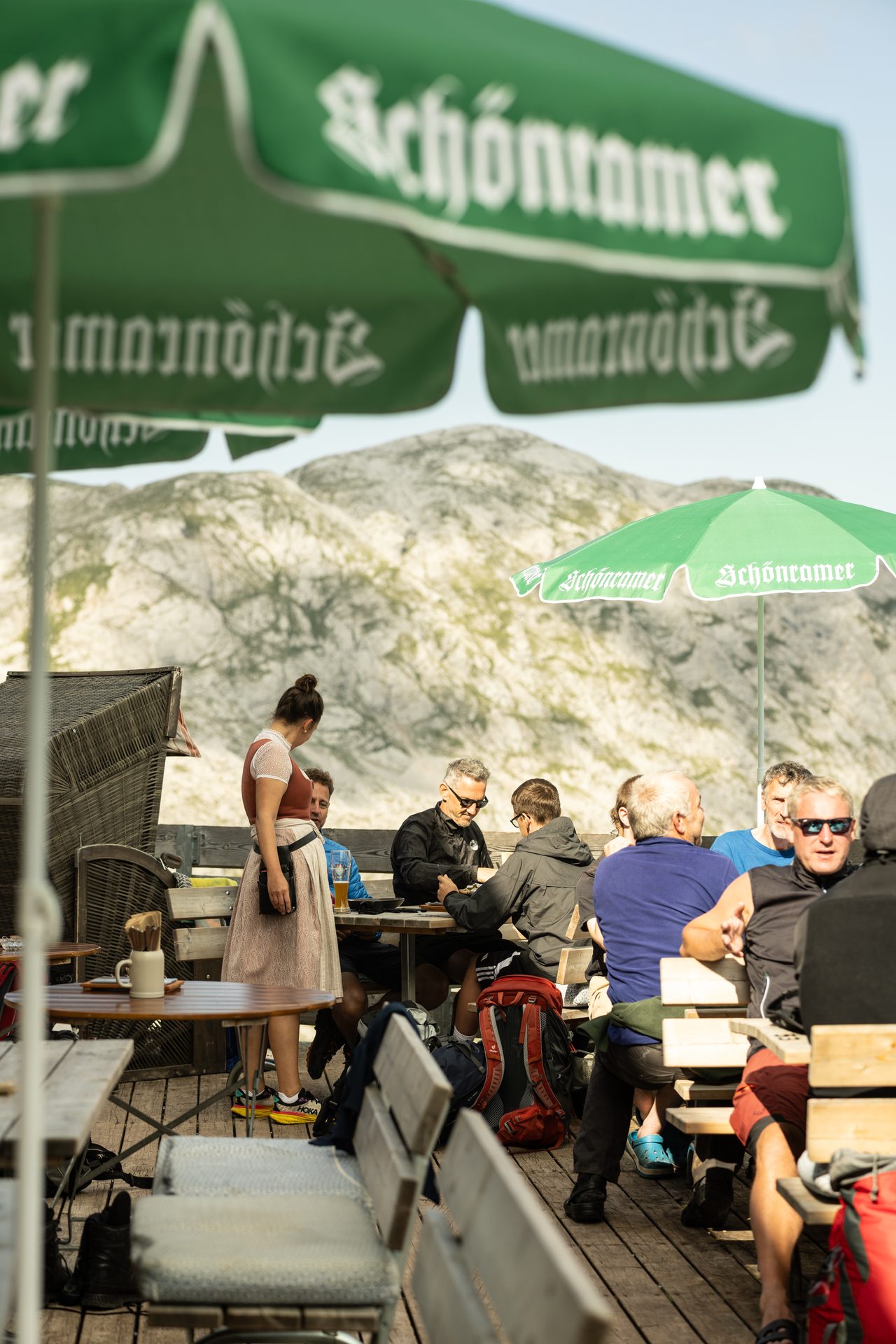 Bei schönem Wetter verbringt der 31-jährige Tag und Nacht hier oben. Nur wenn es mal schlecht wird und weniger los ist, geht er runter nach Lofer, seine Heimat. Dort entspannt er dann aber nicht, sondern arbeitet auf der Loferer Alm. Dort haben er und seine Frau im letzten Jahr ein großes Wirtshaus übernommen, das sie im Winter gemeinsam führen. „Ich fühle mich wohler, wenn ich am Ende des Tages etwas geschafft hab. Ich bin ein sehr schlechter Entspanner und Urlauber“, gibt der Wirt mit einem Schmunzeln zu. Neben ihm steht Kollege Hendrik, schaut ihn an und lacht: „Oh ja, das stimmt. Der ist immer am arbeiten. Als es jetzt fast vier Wochen geregnet hat, war er ein paar Tage unten, dann hatten wir endlich mal was zu tun.“